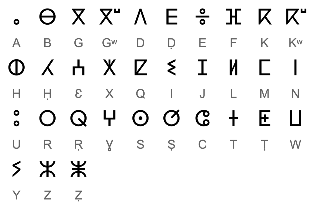 A continuación te dejamos una representación del alfabeto del tamazight que se llama tifinag o tifinagh.